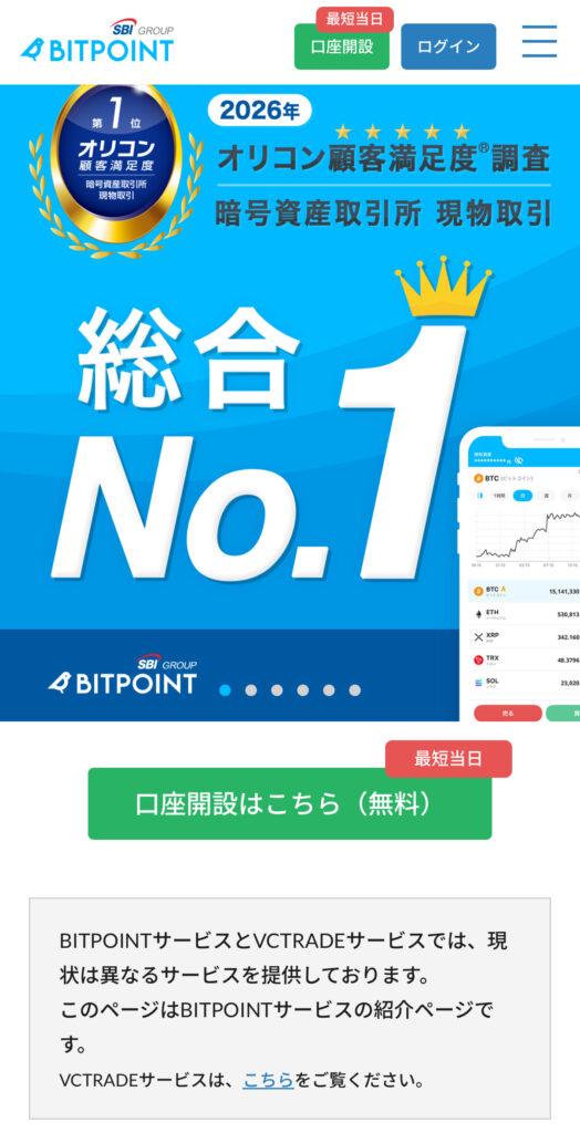 ビットポイントに口座を開設
