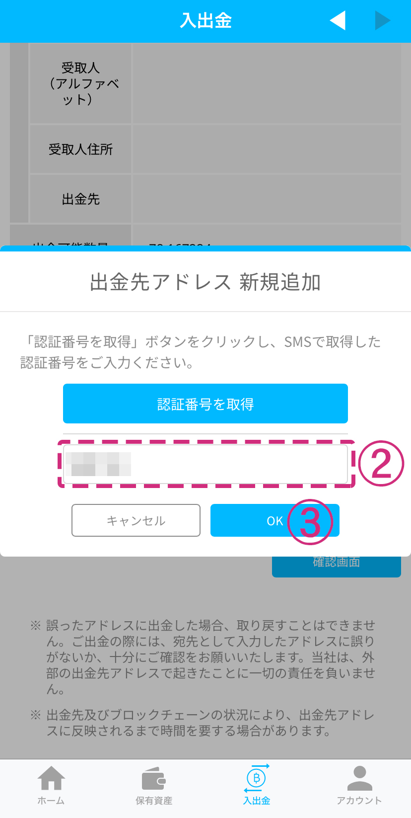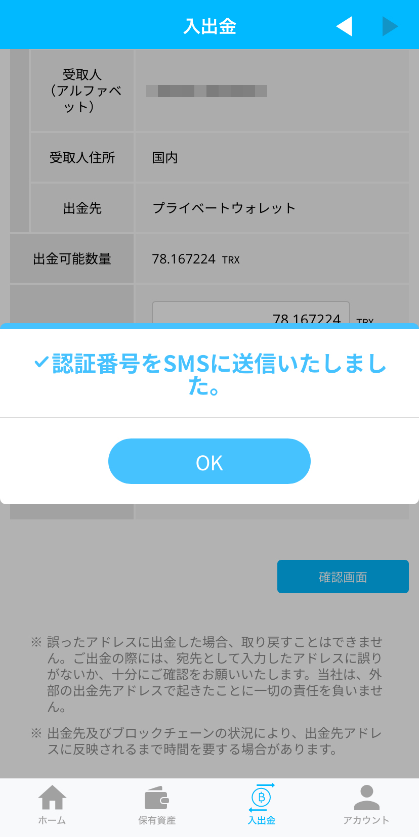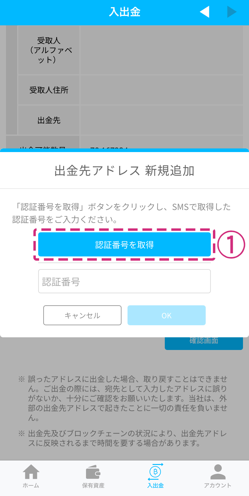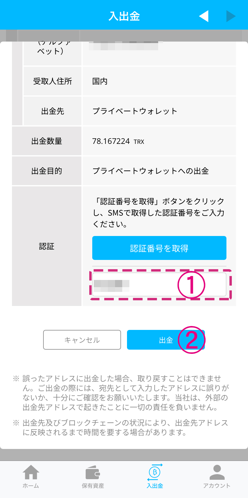 - 入金口座のアドレスと入出金口座のネットワークを完全に一致させる必要がある(間違うと資産を失う)
