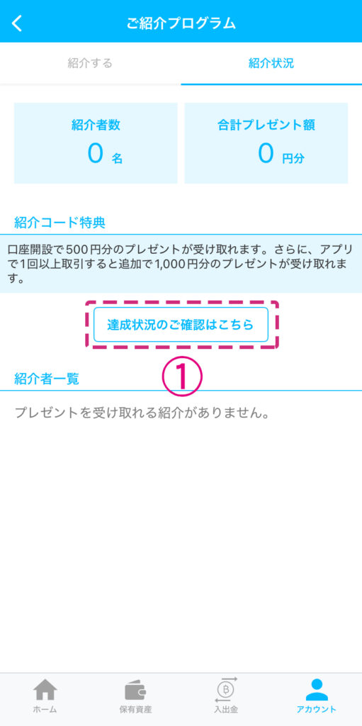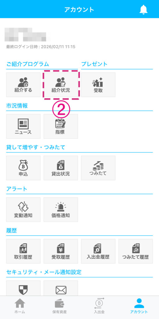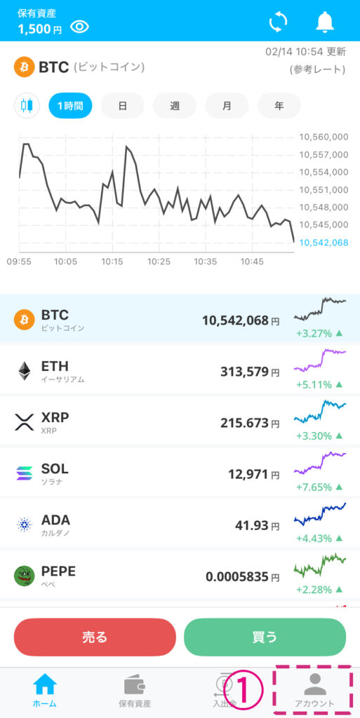 ① BITPOINTホーム画面右下の“アカウント”をタップします。