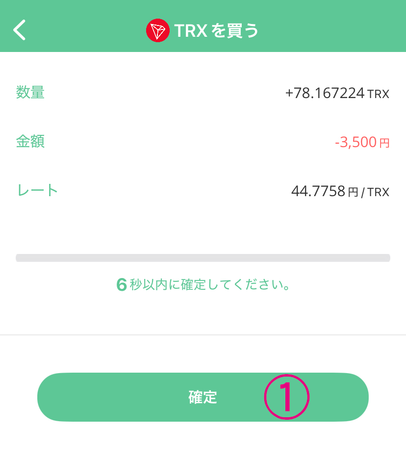 購入できるTRXのコイン数とその時のレートが表示されます。