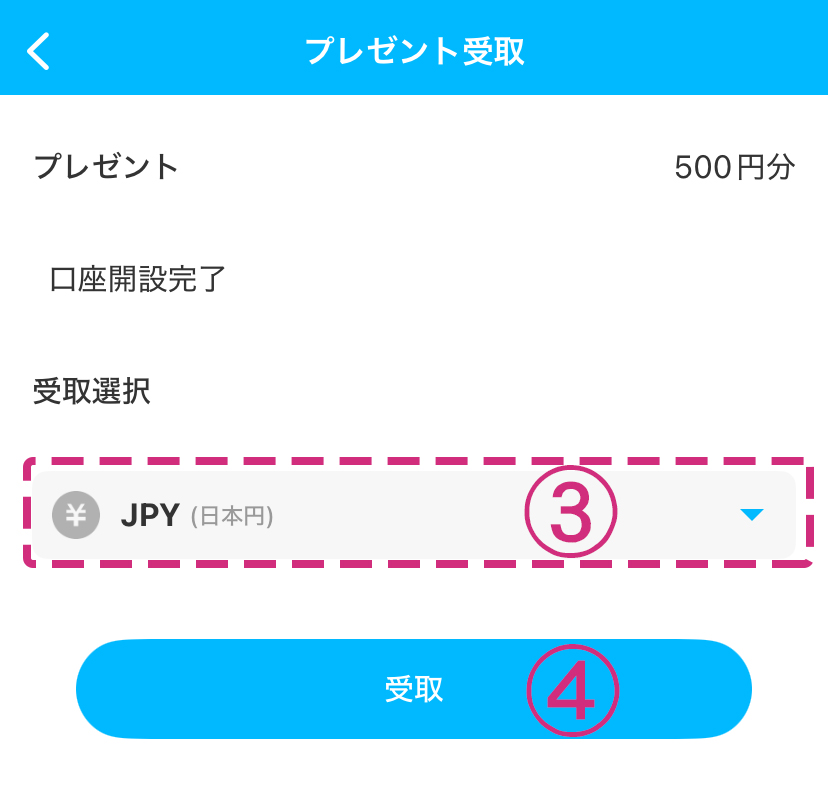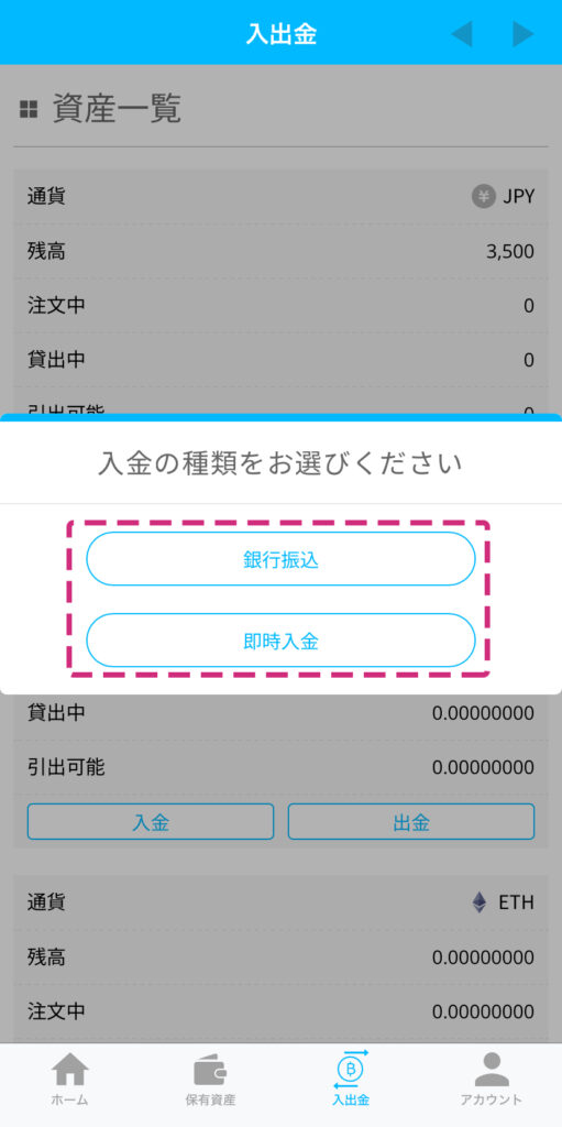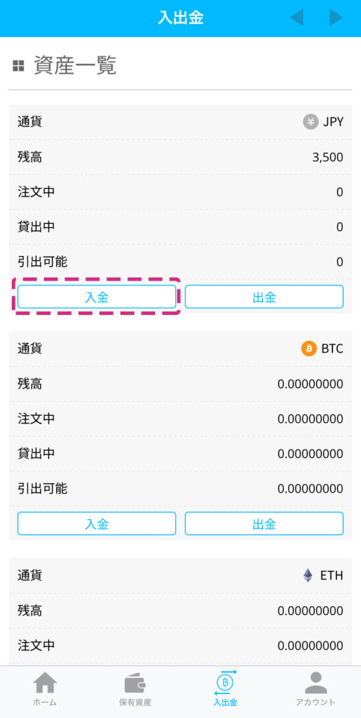 最上段のJPY(日本円)の“入金”ボタンをタップします。