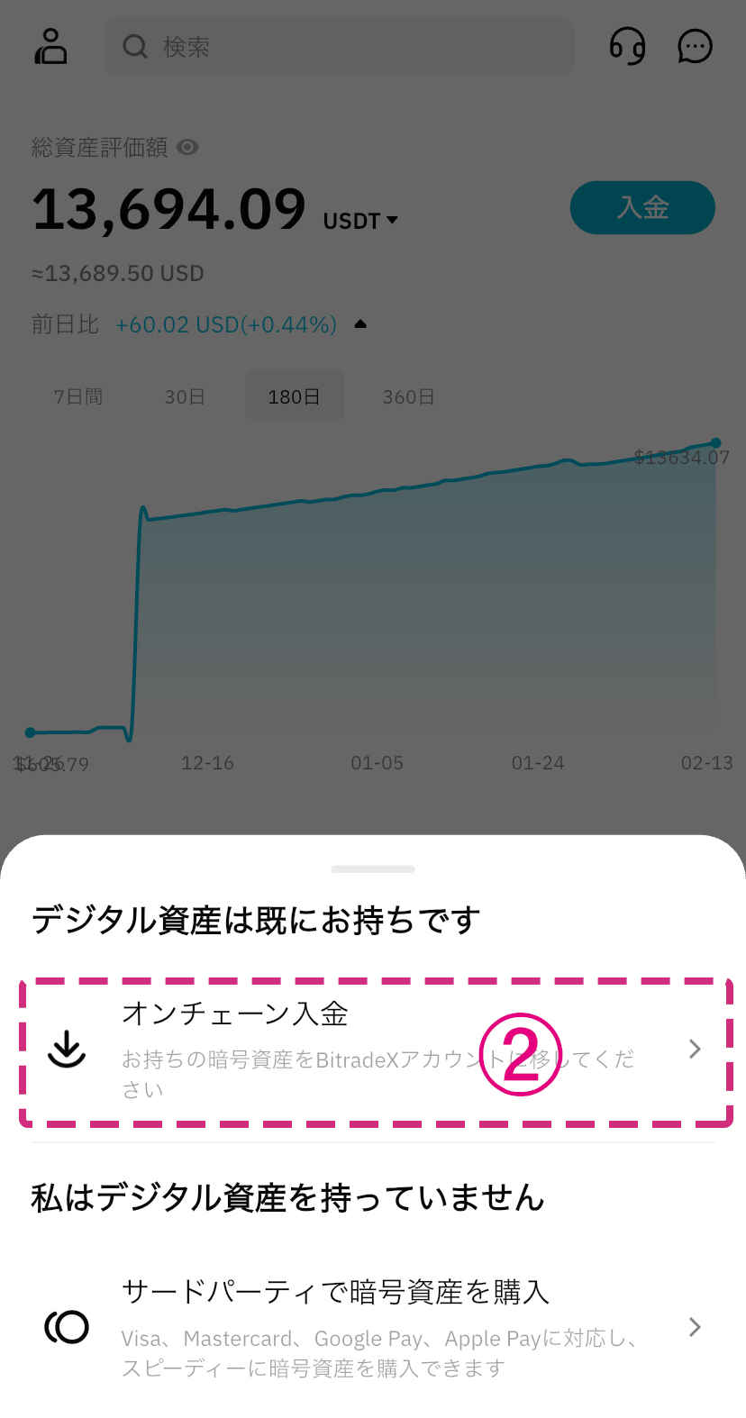 - ② 日本国内の暗号通貨取引所経由で入金する方法