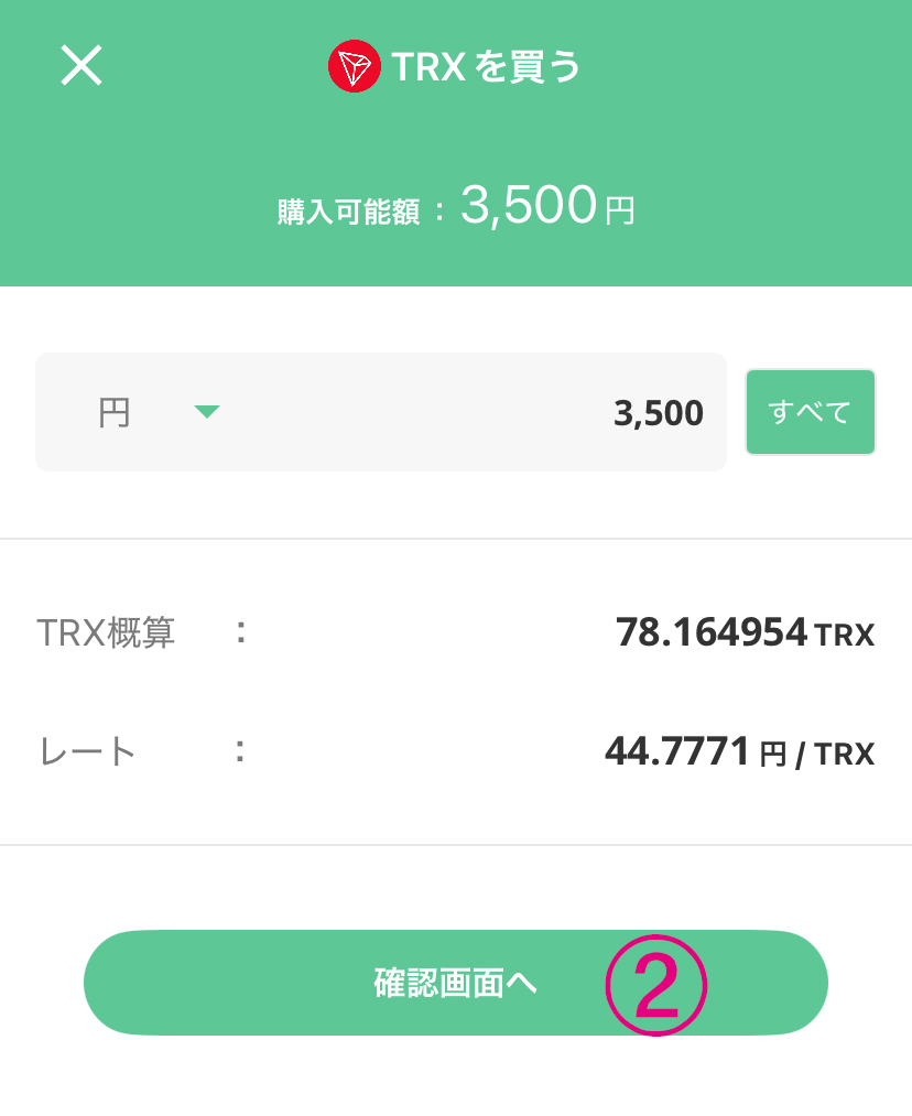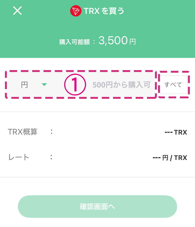 ① 購入可能額の中から、購入するTRXを日本円で入力します。
