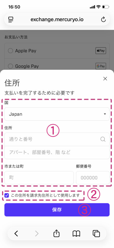 住所は保存されますので、2回目以降の入金時には入力の必要はありません。